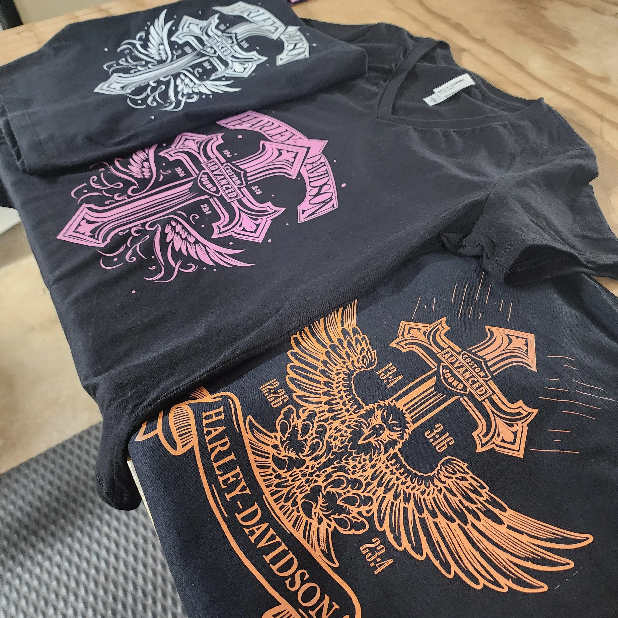 Our services extend beyond apparel to include custom graphics and stickers for sprint cars, 4-wheelers, dirt bikes, and signage, providing eye-catching designs that stand out in any environment.